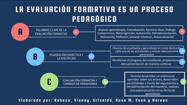 Mejorar aprendizajes, Coevaluación, Ejercicio ético, Diálogo, Compromiso, Metacognición, Autonomía, Retroalimentación, Motivación, Reflexión, Generar intereses, Autoevaluación