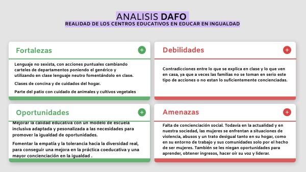ANALISIS DAFO-REALIDAD DE LOS CENTROS EDUCATIVOS EN EDUCAR EN IGUALDAD