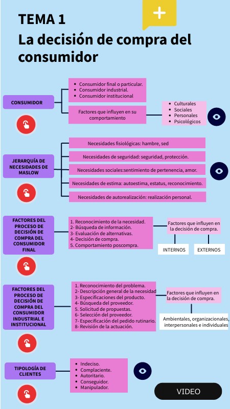 1. Reconocimiento de la necesidad. 2- Búsqueda de información. 3- Evaluación de alternativas. 4- Decisión de compra. 5. Comportamiento poscompra.
