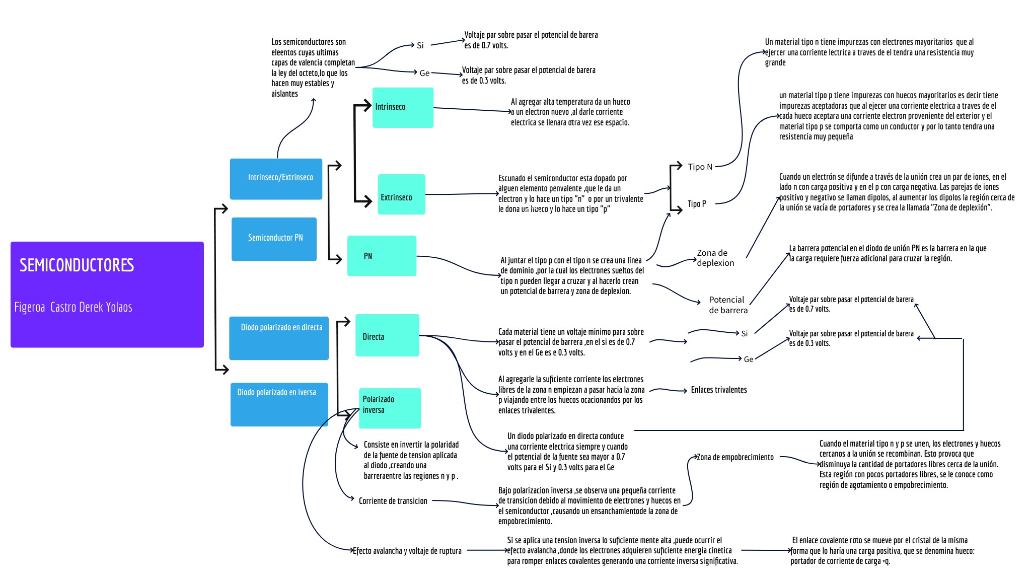 Escunado el semiconductor esta dopado por alguen elemento penvalente ,que le da un electron y lo hace un tipo "n" o por un trivalente le dona un hueco y lo hace un tipo "p"