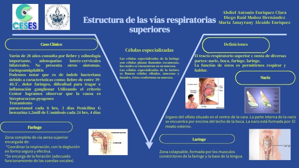 El tracto respiratorio superior c onsta de diversas partes: nariz, boca, faringe, laringe. La función de éstos es permitirnos respirar y hablar.