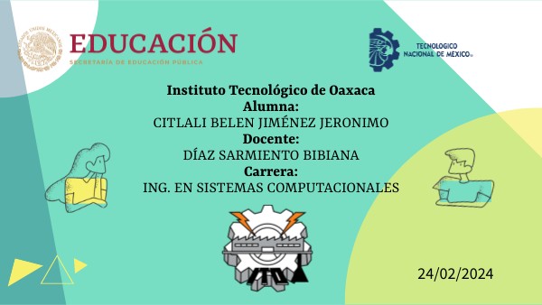 Instituto Tecnológico de Oaxaca Alumna: CITLALI BELEN JIMÉNEZ JERONIMO Docente: DÍAZ SARMIENTO BIBIANA Carrera: ING. EN SISTEMAS COMPUTACIONALES