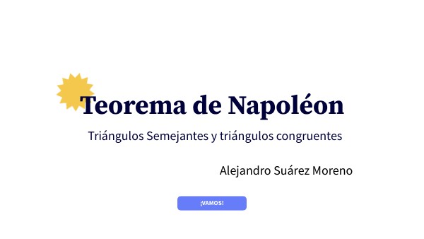 En esta presentación describiremos que dice el Teorema de Napoleón y conoceremos como los conceptos de semejanza y congruencia permitirán entender los primeros pasos para demostrar este importante teorema geométrico