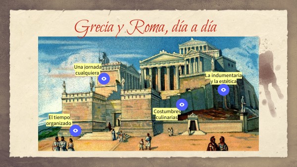 - AL ALBA: Ligeros ejercicios ginmásticos, aseo y desayuno - AL SALIR EL SOL: Reuniones ciudadanas y ágora (compra diaria) - MEDIODÍA: Almuerzo - A LA TARDE: Barbería (cotilleos, habladurias) y después iban al gimnasio/palestra/jugar con amigos -FIN JORNADA y PUESTA DE SOL: Cena y dormir (si no había banquete)