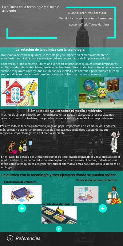 Un ejemplo de cómo la química, la tecnología y su impacto en el medio ambiente se manifiestan en mi vida diaria es a través del uso de productos de limpieza en mi hogar.