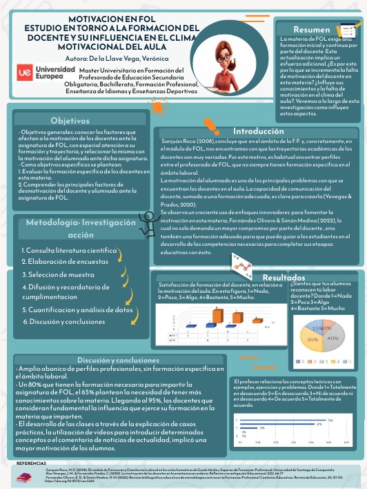 - Objetivos generales: conocer los factores que afectan a la motivación de los docentes ante la asignatura de FOL, con especial atención a su formación y trayectoria, y relacionar la misma con la motivación del alumnado ante dicha asignatura.- Como objetivos específicos se plantean:1. Evaluar la formación específica de los docentes en esta materia.2. Comprender los principales factores de desmotivación del docente y alumnado ante la asignatura de FOL.