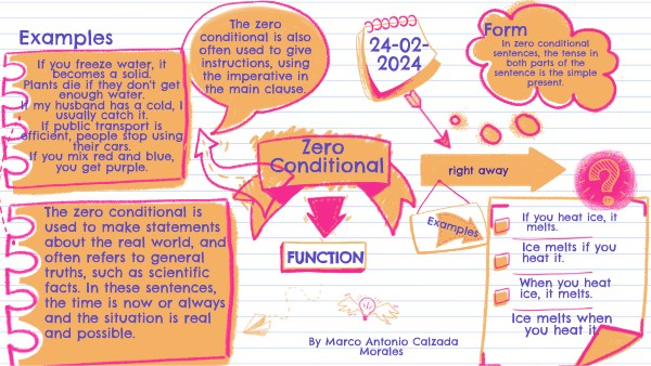 The zero conditional is used to make statements about the real world, and often refers to general truths, such as scientific facts. In these sentences, the time is now or always and the situation is real and possible.