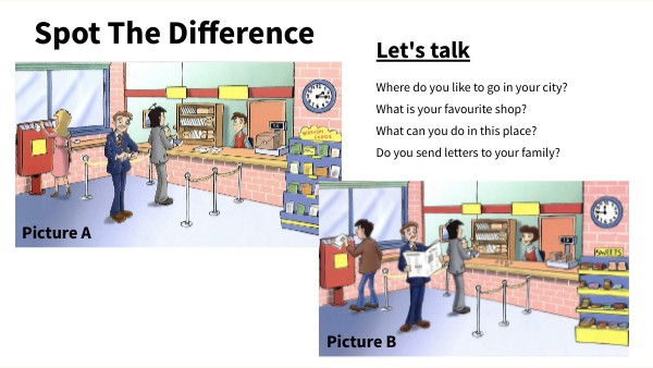 Where do you like to go in your city? What is your favourite shop? What can you do in this place? Do you send letters to your family?