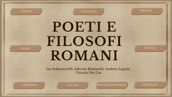 https://www.skuola.net/letteratura-latina-fino-cicerone/cicerone-opere-filosofiche96162x.html#:~:text=Le%20%E2%80%9CTusculanae%20Disputationes%E2%80%9D%20sono%20un,e%20degli%20ostacoli%20per%20raggiungerla. https://www.studenti.it/mecenate-significato-storia-e-il-mecenatismo-oggi.html https://www.studenti.it/marco-anneo-lucano-vita-e-opere.html https://www.studenti.it/seneca-pensiero-analisi-de-brevitate-vitae.html https://it.wikipedia.org/wiki/Nerone https://www.skuola.net/letteratura-latina-eta-augustea/orazio-vita-opere156472x.html#:~:text=Orazio%20%C3%A8%20un%20altro%20grande,che%20ancora%20oggi%20sono%20importanti https://www.studenti.it/fedro-biografia-opere-favole.htmlsitografia