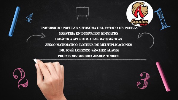 universidad popular autonoma del estado de puebla maestría en innovación educativa didáctica aplicada a las matemáticas juego matemático: loteria de multiplicaciones dr. josé lorenzo sánchez alavez profesora: minerva juarez torres