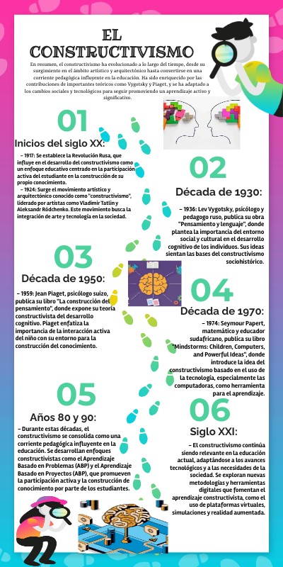 En resumen, el constructivismo ha evolucionado a lo largo del tiempo, desde su surgimiento en el ámbito artístico y arquitectónico hasta convertirse en una corriente pedagógica influyente en la educación. Ha sido enriquecido por las contribuciones de importantes teóricos como Vygotsky y Piaget, y se ha adaptado a los cambios sociales y tecnológicos para seguir promoviendo un aprendizaje activo y significativo.