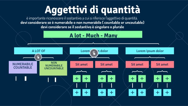 è importante riconoscere il sostantivo a cui si riferisce l'aggettivo di quantità. devi considerare se è numerabile o non numerabile ( countable or uncoutable) devi considerare se il sostantivo è singolare o plurale