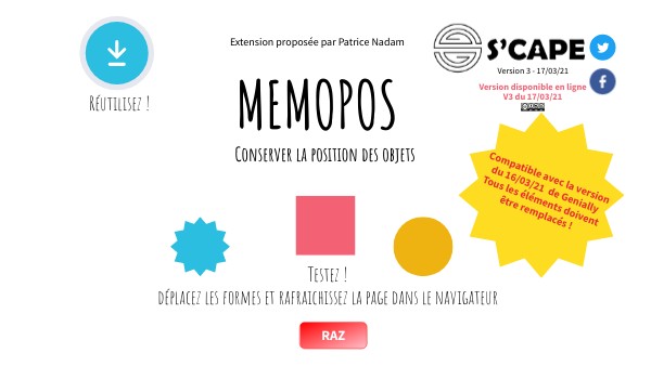 Les éléments pouvent être dupliqués.Chacun d'eux doit être groupé à un objet de Genially.Deux formes proposées compatibles.