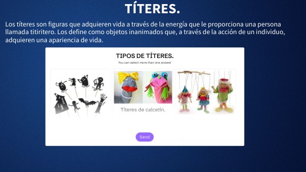 Los títeres son figuras que adquieren vida a través de la energía que le proporciona una persona llamada titiritero. Los define como objetos inanimados que, a través de la acción de un individuo, adquieren una apariencia de vida.