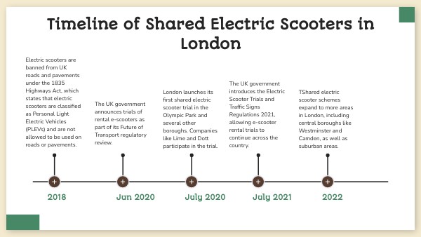 London launches its first shared electric scooter trial in the Olympic Park and several other boroughs. Companies like Lime and Dott participate in the trial.