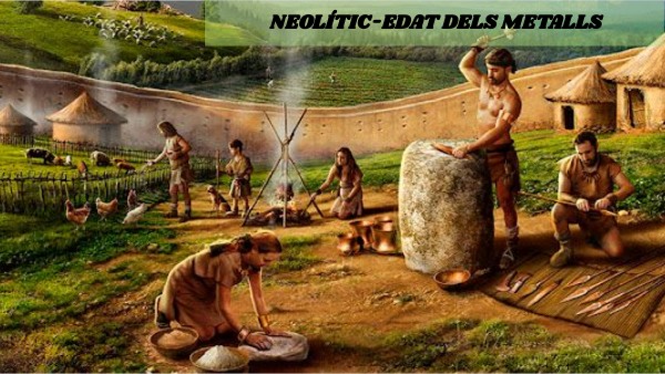 7. Observa la imatge del poblat neolític i descriu les activitats que s’hi representen. Fes el mateix amb els objectes i indica per a què servien.