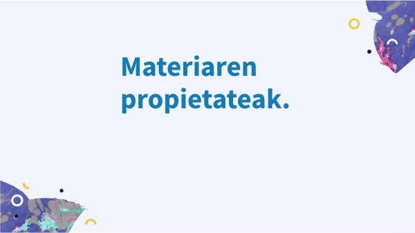 Ezaugarri espezifikoak:(kolorea,gogortasuna,elastikotasuna,disolbagarritasuna eta eroankortasuna.)