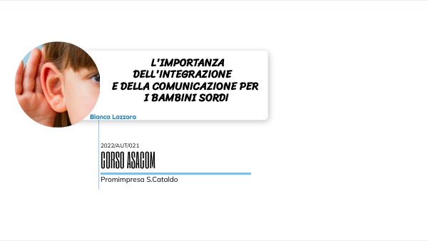 Come potrete comprendere da questa mia breve introduzione, l’argomento da me scelto riguarda proprio il tema dell’integrazione e della comunicazione del soggetto non udente. Ci tengo a sottolineare che i sordi hanno una mancanza dell'udito che può rappresentare una sfida nella comunicazione e nell'interazione con gli altri e se si superano le difficoltà legate all'udito, il bambino sordo non ha mancanze a livello cognitivo e intellettivo e può raggiungere gli stessi livelli di sviluppo di una persona udente. I bambini sordi, infatti, non hanno bisogno di programmi speciali, ma di una metodologia adeguata che consenta loro di svolgere lo stesso programma dei loro compagni. Non bisogna dimenticare che la comunicazione è un processo bidirezionale che consente lo scambio di informazioni e significati tra due o più persone. In una situazione in cui uno dei partecipanti è un bambino sordo, la comunicazione può essere compromessa a causa della sua difficoltà nel parlare. Tuttavia, il problema non si limita solo al bambino sordo, ma si estende a tutta la classe che potrebbe non essere in grado di comunicare efficacemente con il bambino sordo e comprendere i suoi bisogni, desideri e pensieri. Questo può creare isolamento e frustrazione per il bambino sordo, nonché limitare le opportunità di apprendimento e inclusione sociale. È quindi fondamentale sensibilizzare la classe sui diversi metodi e fornire loro strumenti per comunicare con il bambino sordo in modo efficace e inclusivo. Questo non solo migliorerà la comunicazione con il bambino sordo, ma anche promuoverà un ambiente scolastico più inclusivo e solidale per tutti gli studenti.Per quel che riguarda l'apprendimento, l'inserimento a scuola del bambino sordo, non di rado è accompagnato da una scarsa informazione e da veri e propri pregiudizi sulla sordità da parte degli insegnanti: sottovalutato perché ritenuto psichicamente immaturo, intellettivamente sottosviluppato, incapace di astrarre, di ragionare e perfino di conquistarsi un equilibrio tra istinto e razionalità. Tutto questo perché gli oggettivi limiti che il bambino sordo presenta per quel che riguarda le competenze linguistiche, vengono estesi, dagli insegnanti anche alle sue capacità cognitive.Lezioni frontali e interrogazioni rappresentano la modalità di insegnamento più diffusa e radicata nel sistema scolastico italiano. È evidente che questo metodo didattico non tiene conto dei bisogni e dei limiti degli alunni sordi, i quali troppo spesso si trovano nelle condizioni di dover faticare parecchio e, a volte, di sentirsi letteralmente emarginati dalla classe.