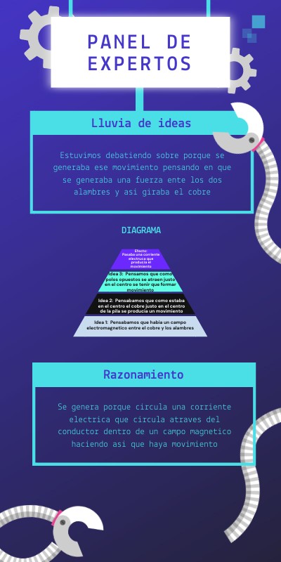 Estuvimos debatiendo sobre porque se generaba ese movimiento pensando en que se generaba una fuerza ente los dos alambres y asi giraba el cobre