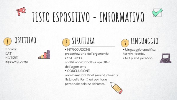 • Linguaggio specifico, termini tecnici. • NO prima persona
