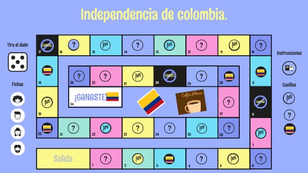 Partiendo desde la casilla de salida, tendréis que ir tirando el dado y respondiendo a todas las preguntas. Cuando la respuesta sea incorrecta, pasará vuestro turno y tendréis que pensarlo para más tarde. El equipo ganador será el que consiga llegar a la casilla de llegada. ¡Mucha suerte!