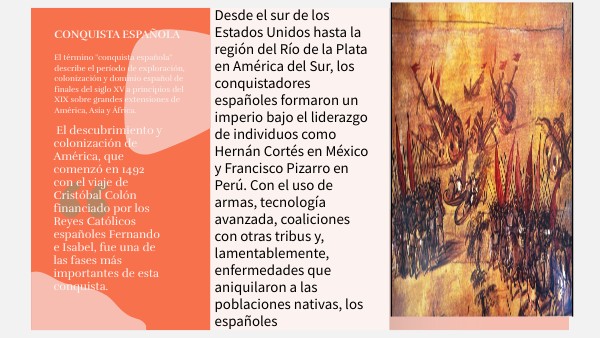 pudieron subyugar y El término "conquista española" describe el período español de finales del siglo XV a principios del XIX. exploración, colonización y dominio sobre grandes extensiones de América, Asia y África.