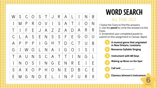 1.Solve the Clues to find the answers. 2. Use the pencil to circle the answers to the Clues. 3. Screenshot your completed puzzle to submit on this assignment in Canvas. (6pts)