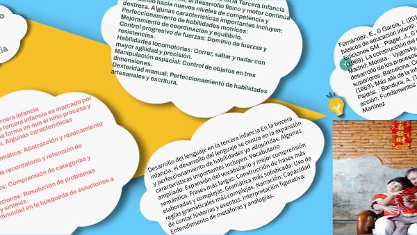 En la tercera infancia, el desarrollo del lenguaje se centra en la expansión y perfeccionamiento de habilidades ya adquiridas. Algunas características importantes incluyen: