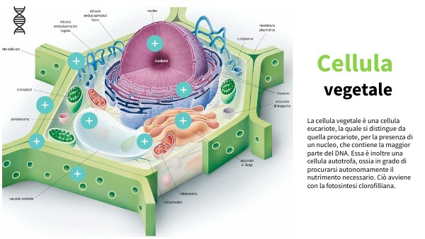 La cellula vegetale è una cellula eucariote, la quale si distingue da quella procariote, per la presenza di un nucleo, che contiene la maggior parte del DNA. Essa è inoltre una cellula autotrofa, ossia in grado di procurarsi autonomamente il nutrimento necessario. Ciò avviene con la fotosintesi clorofilliana.
