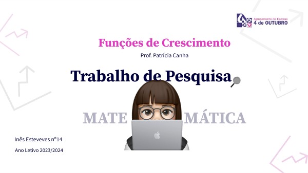 Este trabalho foi proposto e realizado no âmbito da disciplina de Mátemática no Módulo "Funções de Crescimento" e tem como objetivo desenvolver e aplicar os conteúdos dados durante as aulas.