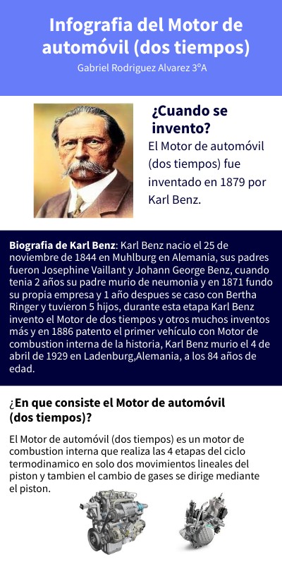 El Motor de automóvil (dos tiempos) fue inventado en 1879 por Karl Benz.