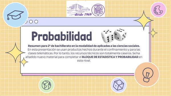 Resumen para 2º de bachillerato en la modalidad de aplicadas a las ciencias sociales. En esta presentación se usan productos hechos durante el confinamiento y para las clases telemáticas. Por lo tanto, los recursos técnicos son totalmente caseros. Se ha añadido nuevo material para completar el BLOQUE DE ESTADíSTICA Y PROBABILIDAD en este nivel.