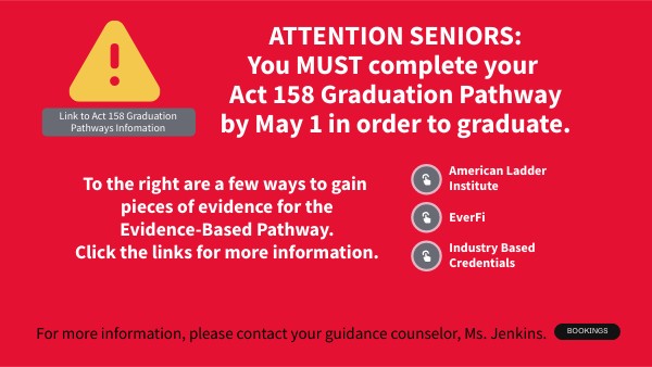 ATTENTION SENIORS:You MUST complete your Act 158 Graduation Pathway by May 1 in order to graduate.
