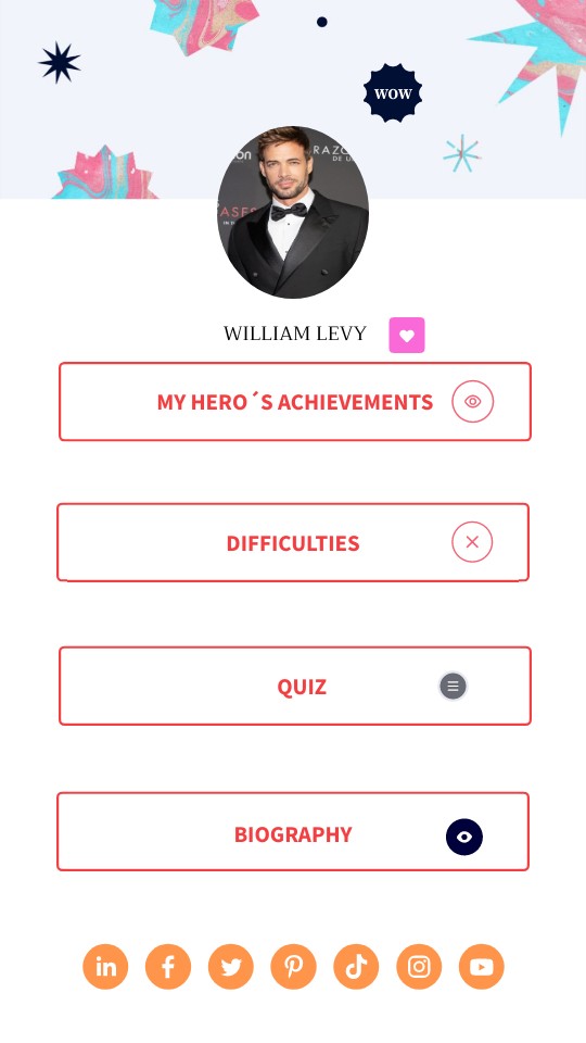 I really look up to William Levy because throughout his life he has had many problems but he has known how to solve them and also achieve his great dream of being an actor. He is a person who has achieved everything he has set his mind to and he seems to me to be a great example to follow. In my opinion, he shows a lot os strenght, courage, effort and perseverance.