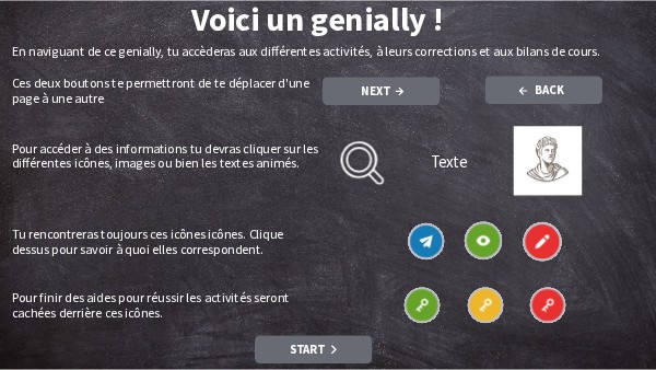 Pour finir des aides pour réussir les activités seront cachées derrière ces icônes.