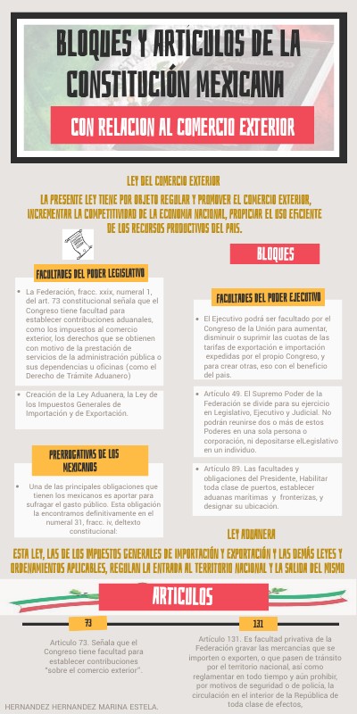 Articulo 73. Señala que el Congreso tiene facultad para establecer contribuciones “sobre el comercio exterior”.