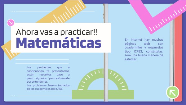 Los problemas que a continuación te presentamos, están resueltos paso a paso.....síguelos.....pero esfuérzate por entenderlos. Los problemas fueron tomados de los cuadernillos del ICFES.