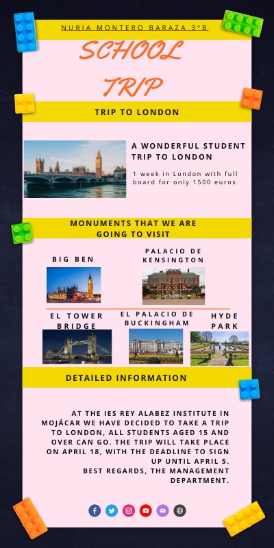 At the IES Rey Alabez Institute in Mojácar we have decided to take a trip to London, all students aged 15 and over can go. The trip will take place on April 18, with the deadline to sign up until April 5.Best regards, the management department.