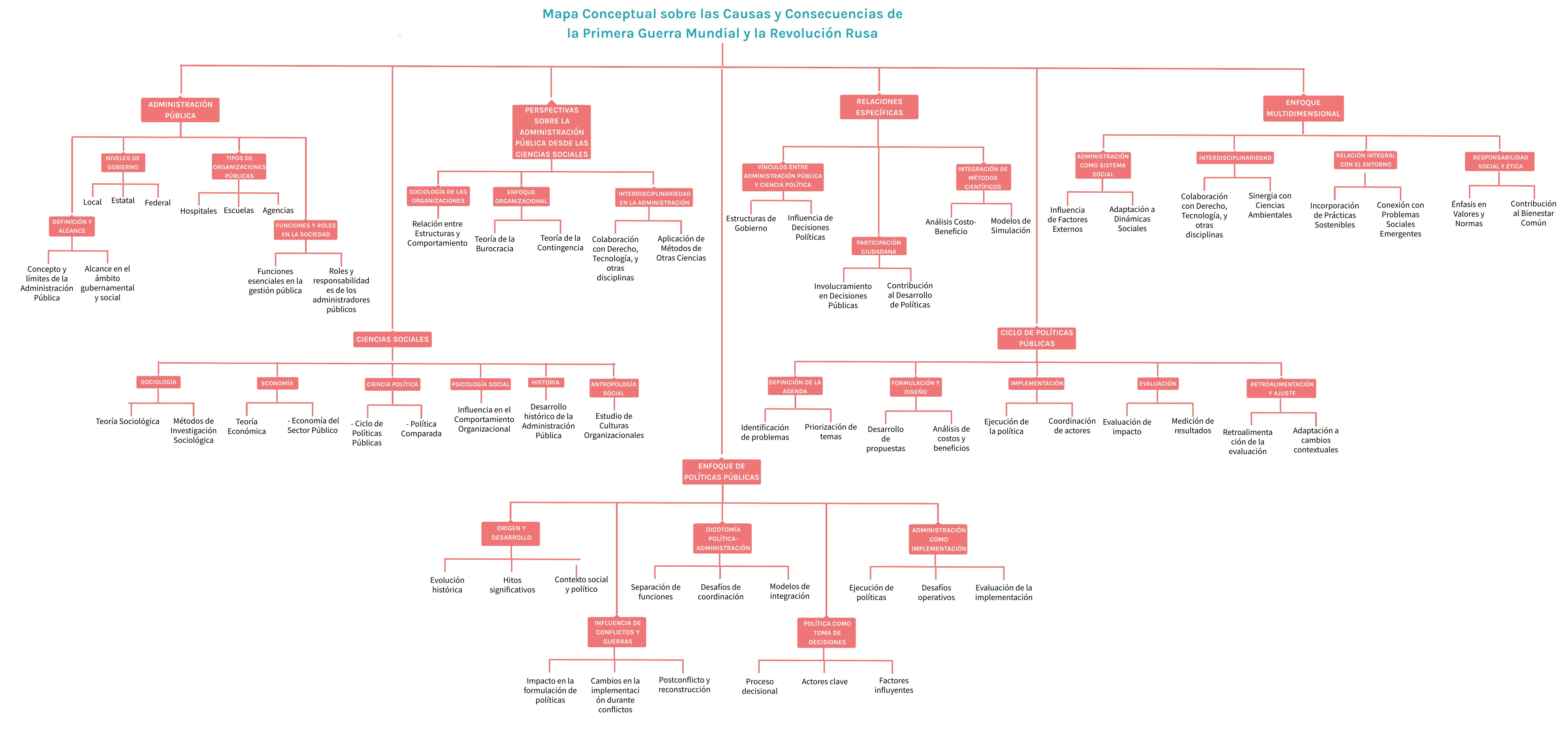 Mapa Conceptual sobre las Causas y Consecuencias de la Primera Guerra Mundial y la Revolución Rusa