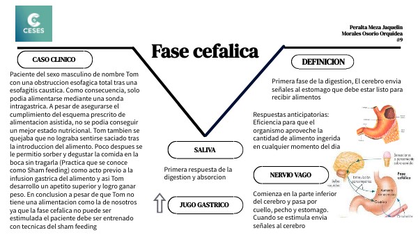 Paciente del sexo masculino de nombre Tom con una obstruccion esofagica total tras una esofagitis caustica. Como consecuencia, solo podia alimentarse mediante una sonda intragastrica. A pesar de asegurarse el cumplimiento del esquema prescrito de alimentacion asistida, no se podia conseguir un mejor estado nutricional. Tom tambien se quejaba que no lograba sentirse saciado tras la introduccion del alimento. Poco despues se le permitio sorber y degustar la comida en la boca sin tragarla (Practica que se conoce como Sham feeding) como acto previo a la infusion gastrica del alimento y asi Tom desarrollo un apetito superior y logro ganar peso. En conclusion a pesar de que Tom no tiene una alimentacion como la de nosotros ya que la fase cefalica no puede ser estimulada el paciente debe ser entrenado con tecnicas del sham feeding