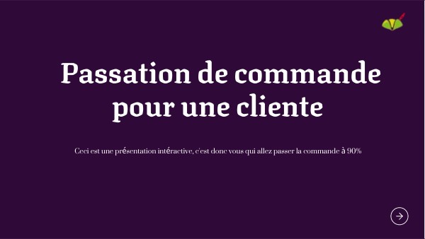 Ceci est une présentation intéractive, c'est donc vous qui allez passer la commande à 90%