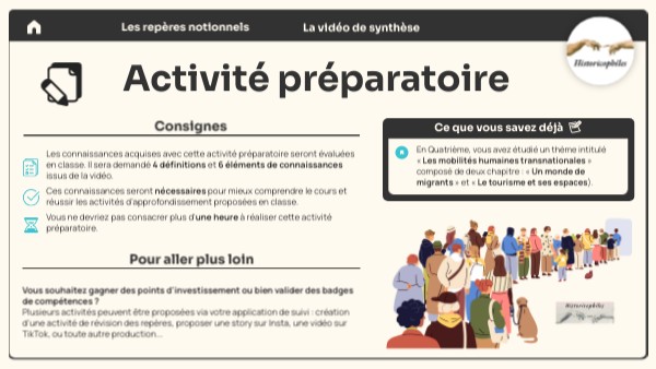 En Quatrième, vous avez étudié un thème intitulé « Les mobilités humaines transnationales » composé de deux chapitre : « Un monde de migrants » et « Le tourisme et ses espaces).