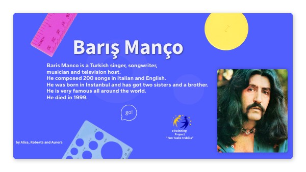 Baris Manco is a Turkish singer, songwriter,musician and television host. He composed 200 songs in Italian and English. He was born in Instanbul and has got two sisters and a brother. He is very famous all around the world. He died in 1999.