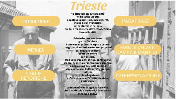 - Personificazione = "Trieste" (v. 8). Nomina la città come se fosse dotata di vita propria.