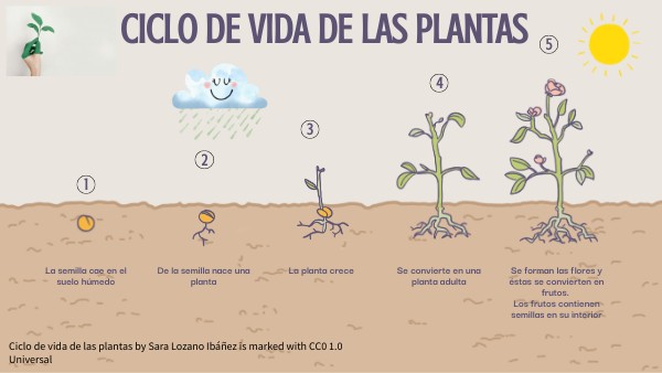Ciclo de vida de las plantas by Sara Lozano Ibáñez is marked with CC0 1.0 Universal