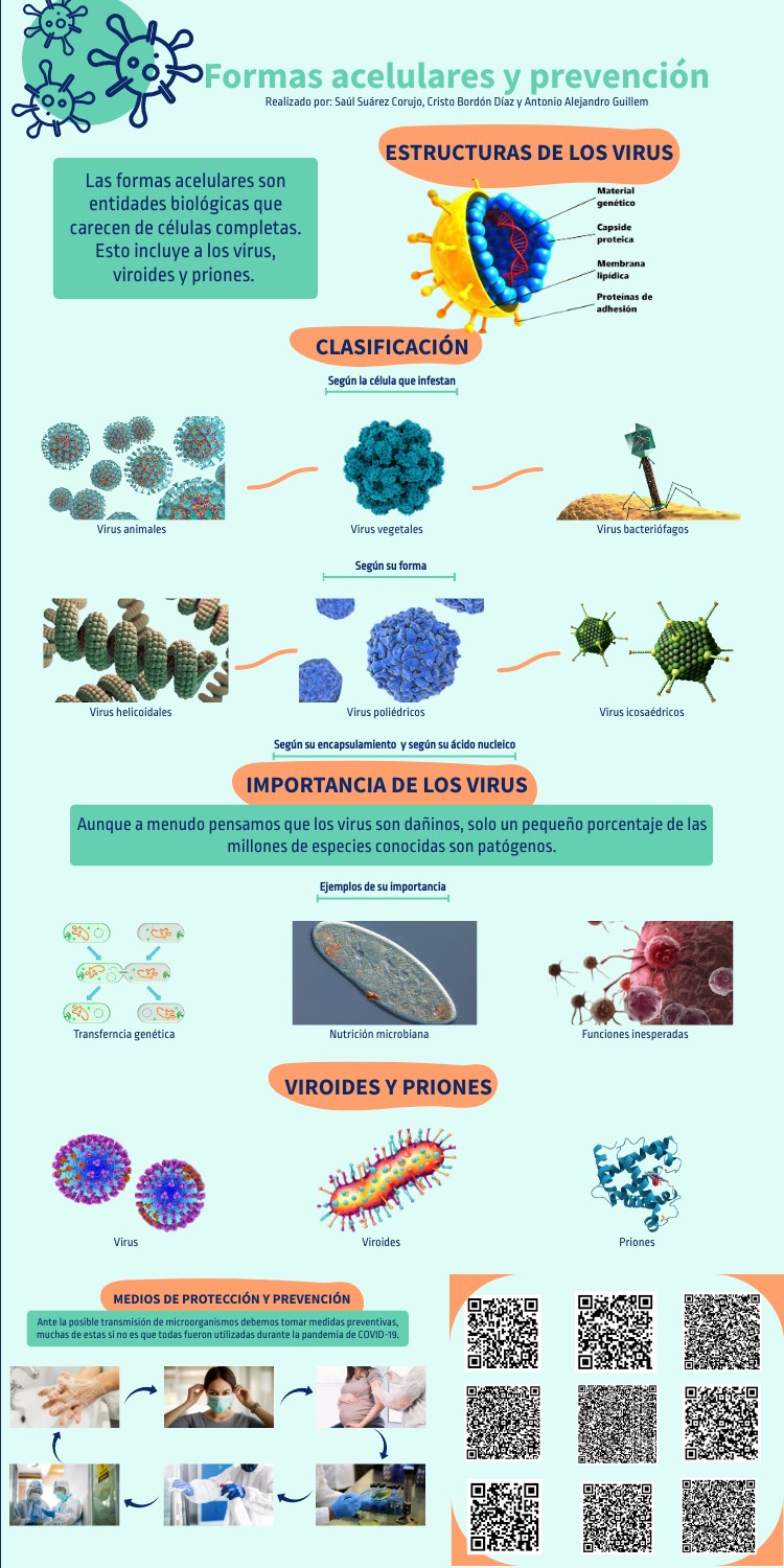 Las formas acelulares son entidades biológicas que carecen de células completas. Esto incluye a los virus, viroides y priones.