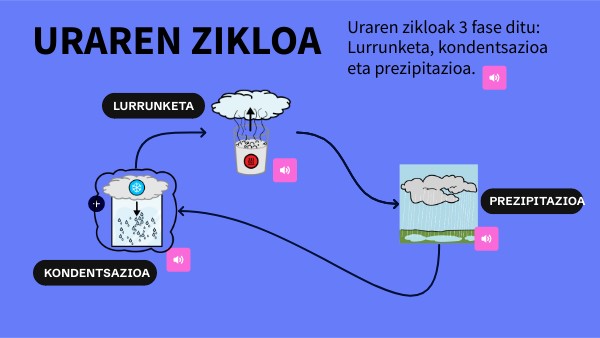 Uraren zikloak 3 fase ditu: Lurrunketa, kondentsazioa eta prezipitazioa.