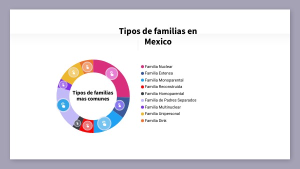 La Familia Nuclear es aquella que se compone de una Mujer, un Hombre y/o hijos. Este tipo de familias forman parte del 40.4 % de los tipos de Familias siendo el mas comun