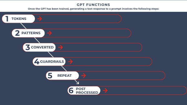 The GPT uses statistical patterns to predict likely words or phrases that might form a response to the prompt