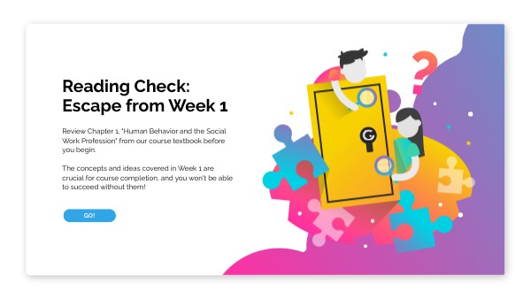 Review Chapter 1, "Human Behavior and the Social Work Profession" from our course textbook before you begin. The concepts and ideas covered in Week 1 are crucial for course completion, and you won't be able to succeed without them!